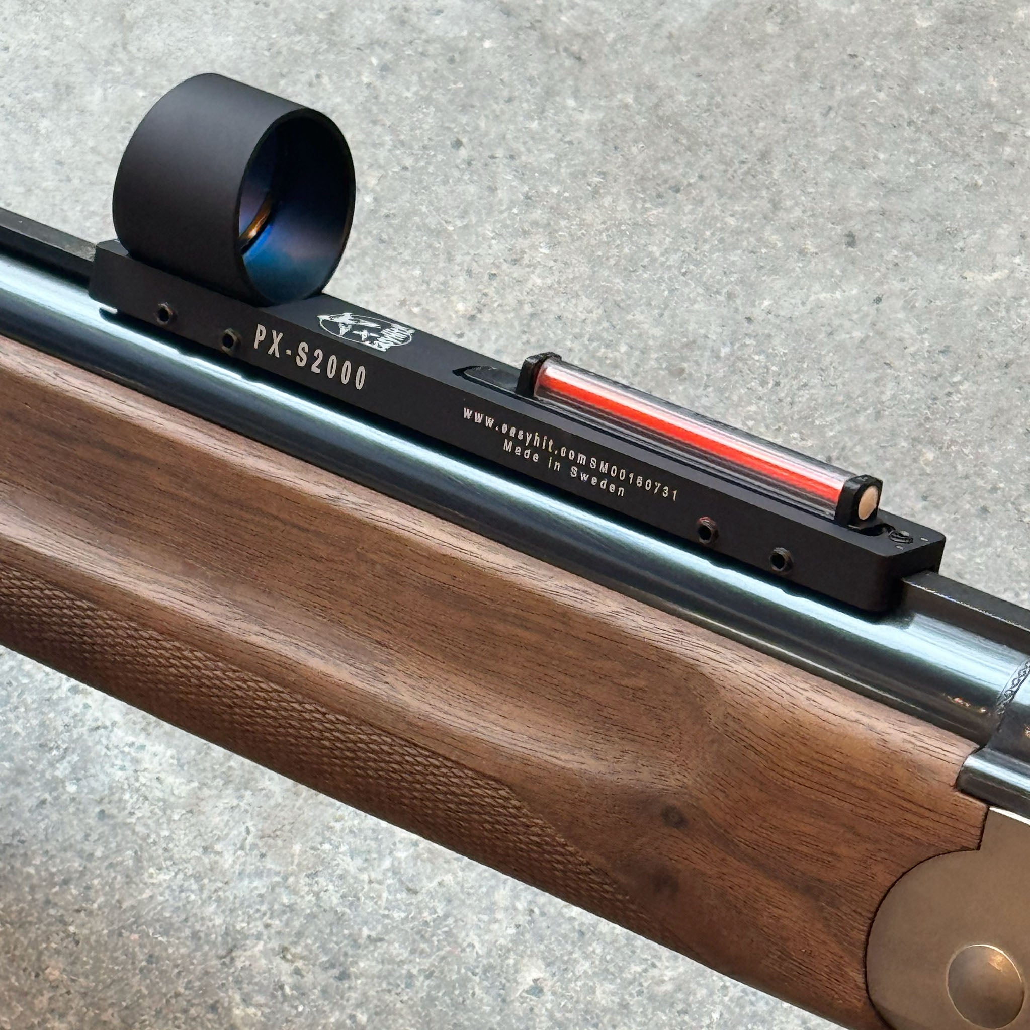 The EasyHit PX-S2000 is a lightweight, non-electronic reflex sight designed to improve shotgun accuracy in a wide range of lighting conditions. It uses a mirrored lens and a fiber-optic illumination system to provide a clear Ring or Ring-Dot reticle without batteries, switches, or adjustments.